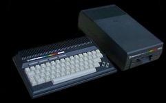 Textverarbeitungsprogramm. Letzteres war allerdings so einfach, daß man kaum etwas damit anfangen konnte, da nur 99 Zeilen gespeichert werden konnten. In der Abbildung ist auch das seltene Diskettenlaufwert 1551 abgebildet, welches über den Erweiterungsport betrieben wurde. |