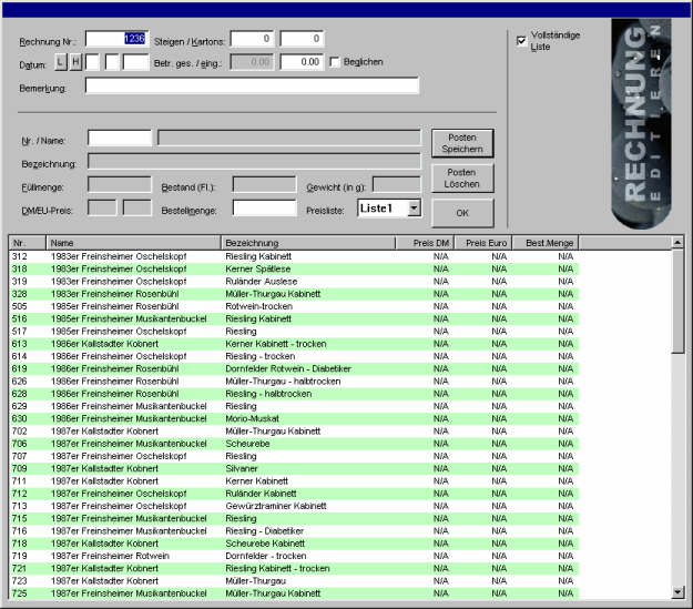 Abbildungen / Screenshots von WeinAdmin